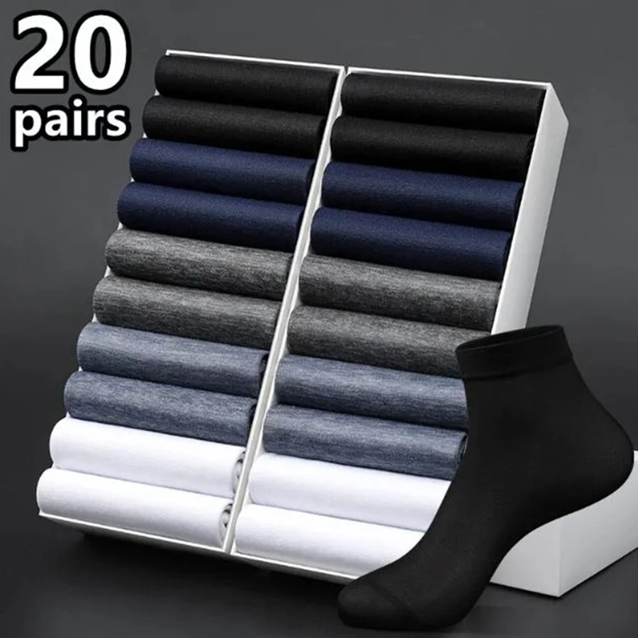 10pairs Men Ice Silk Socks Summer Spring Ultra-thin Socks Solid Business Breathable Soft Socks Ankle Bamboo Fiber Socks