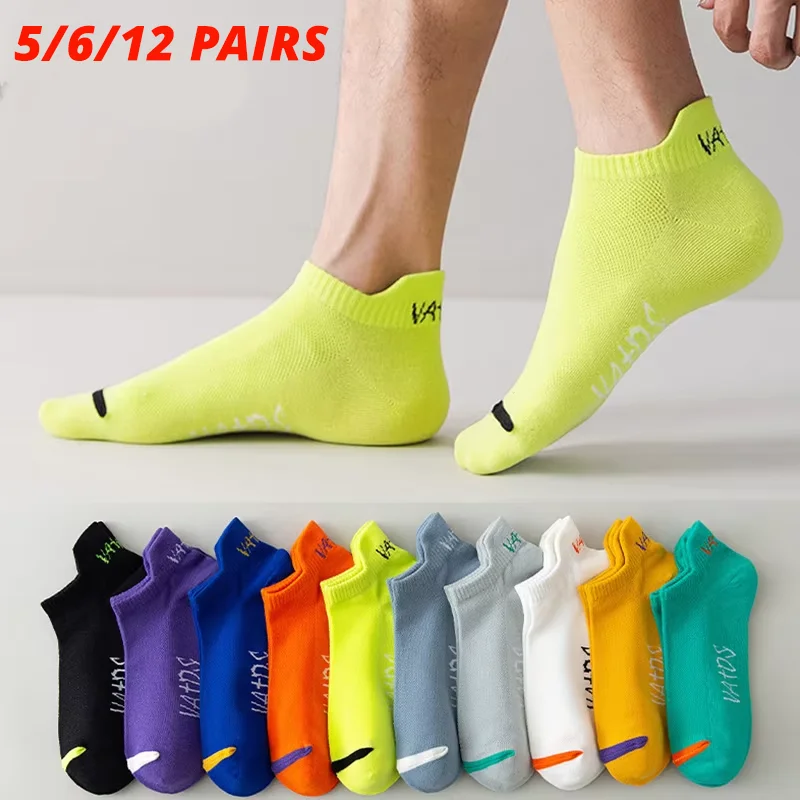 5/6/12 Pairs Bright Color Ankle No Show Socks Men Breathable Street Fashion Sport Deodorant Invisible Travel Running Socks