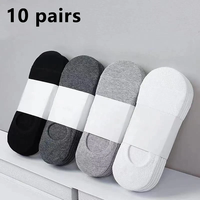 10 pairs solid color men socks cardboard breathable sports socks casual boat socks comfortable cotton ankle socks, sizes 38-44