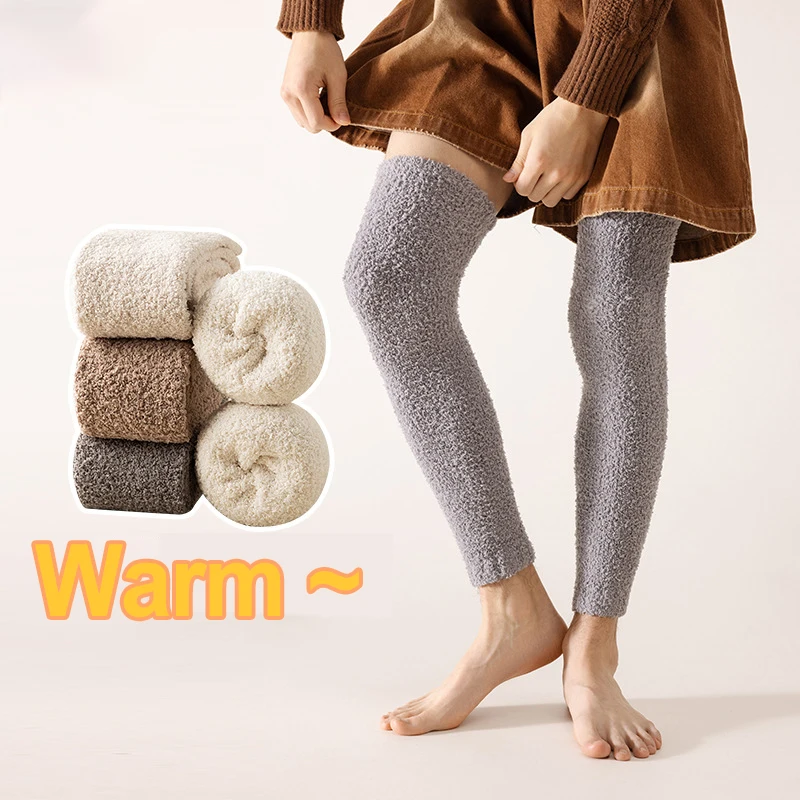 1 Pair Autumn Winter Thick over Knee Coral fleece Warm Neutral Long Tube Socks Leg Pads Knee Pads Plush Comfortable Casual Socks