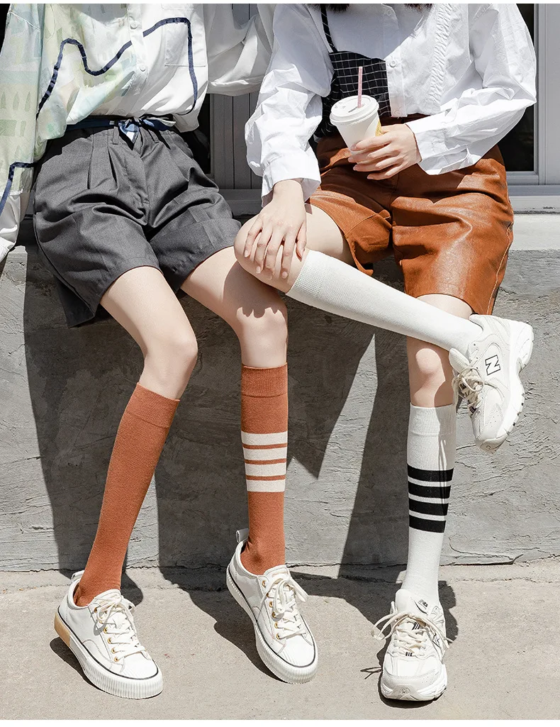 1 pair, sports socks, casual asymmetrical calf socks, striped four bar calf socks, mid length socks