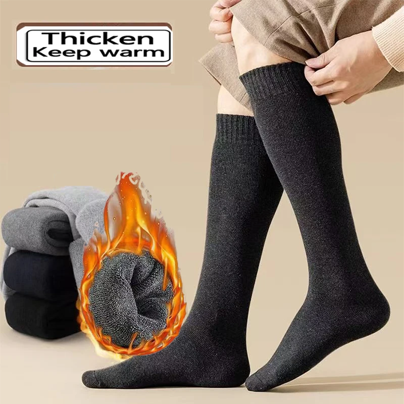 3 Pair Winter Thick Warm Knee-High Men's Wool Socks Men's Merino Calf Socks Casual Cashmere Terry Socks Fashion Stockings Men