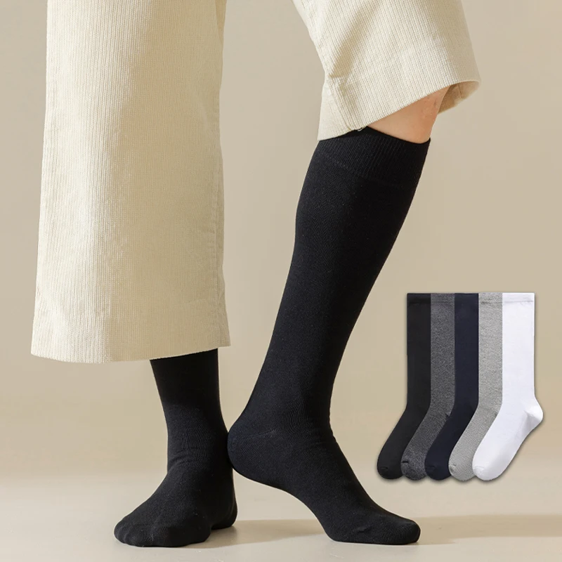 Men's Cotton Knee-high Socks Breathable Comfortable Casual Sock Fashion High Quality Solid Color Soft Male Sox Sweat-absorbing