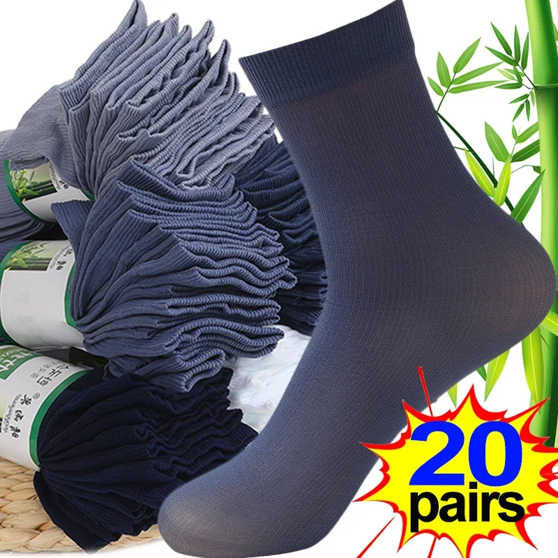 40PCS Summer Men Socks Silk Ultrathin Bamboo Fiber Stripe Long Sock Sports Stockings Antibacterial Business Socks Sox Wholesale