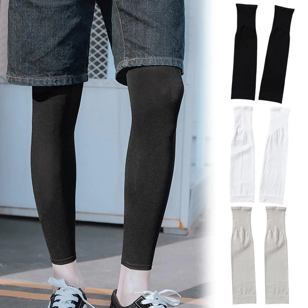 1Pair Summer Ice Silk Legs Sleeve Non-Slip UV Protection Compression Sleeve Breathable Elastic Knee Calf Sleeves Cycling Running