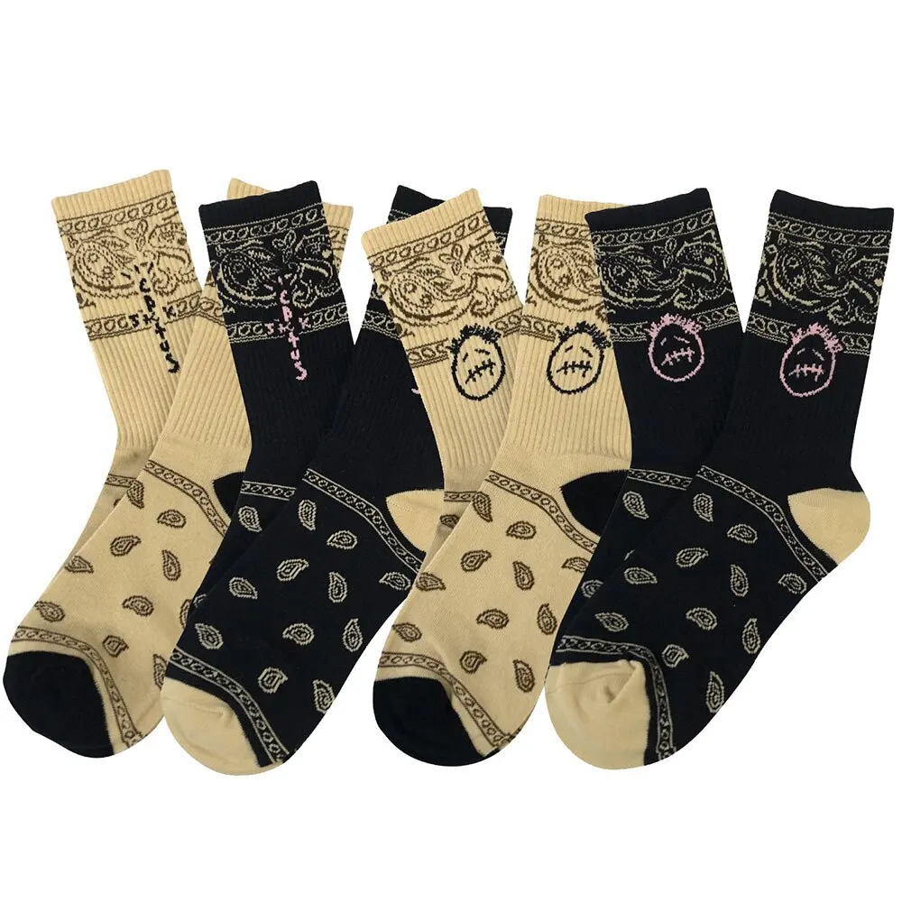 4pairs Men's Cashew Flower Pattern Cotton Crew Socks For Casual