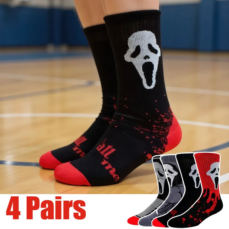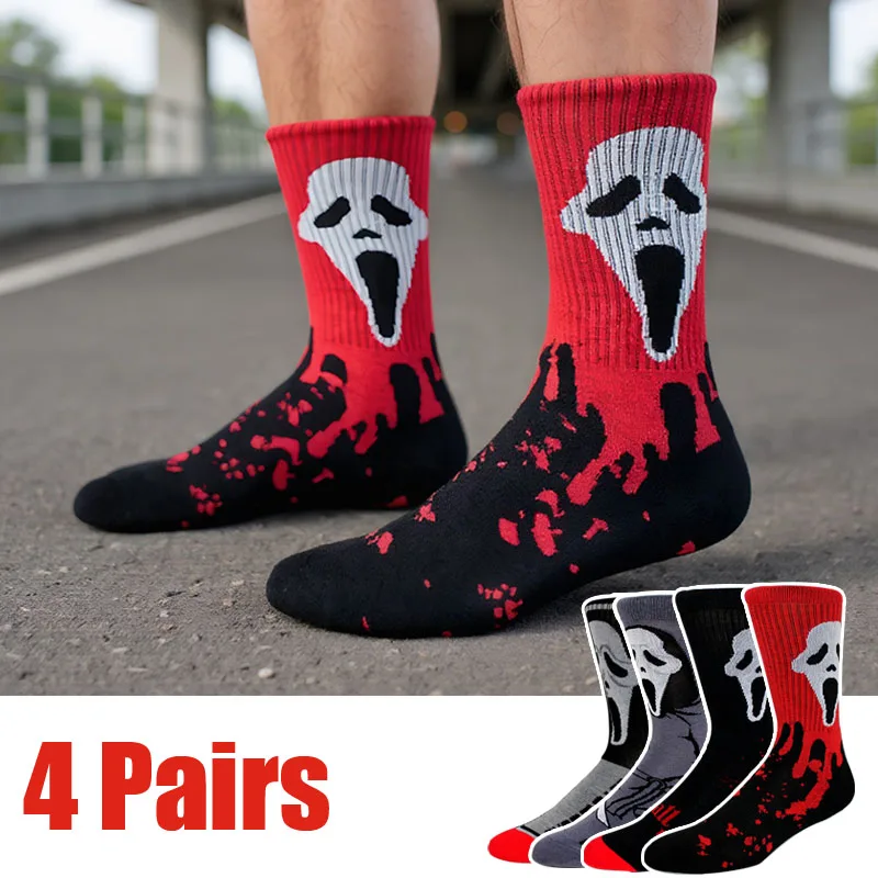 4 Pairs Men socks Skull Pattern Fashion Versatile Crew Socks Halloween Socks Horror Style Socks Novelty Trend Street Size 36-44