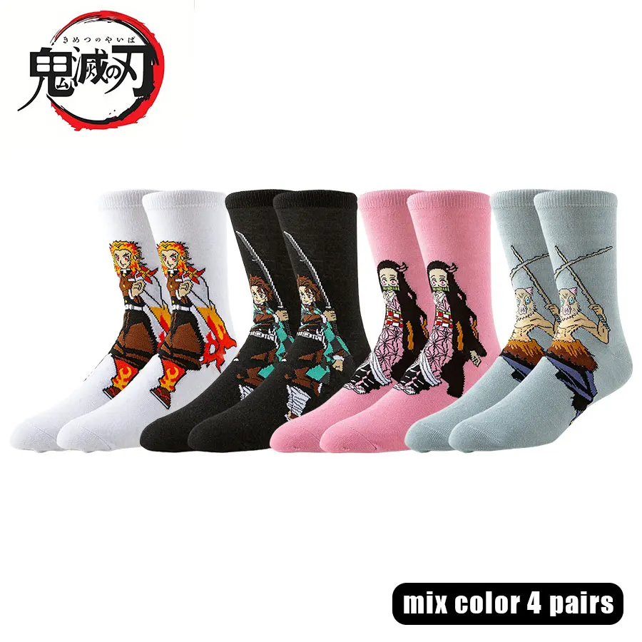 4Pairs BANDAI Demon Slayer Kanao Tengen Unisex Novelty Funny Crew Socks Cartoon Anime Hip Hop Street Fashion