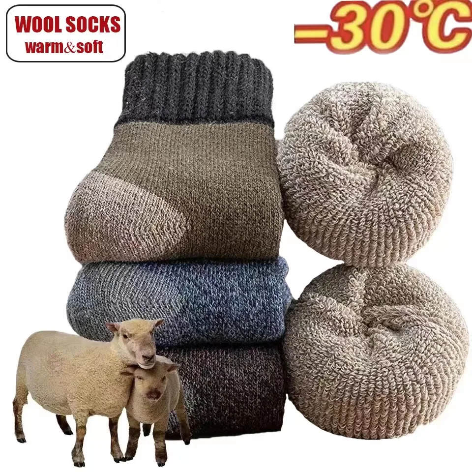 3 Pairs New Thicken Wool Socks Snow Terry Merino Wool Socks Winter Warm Plush Sock for Men Outdoor Sports Middle Tube Socks