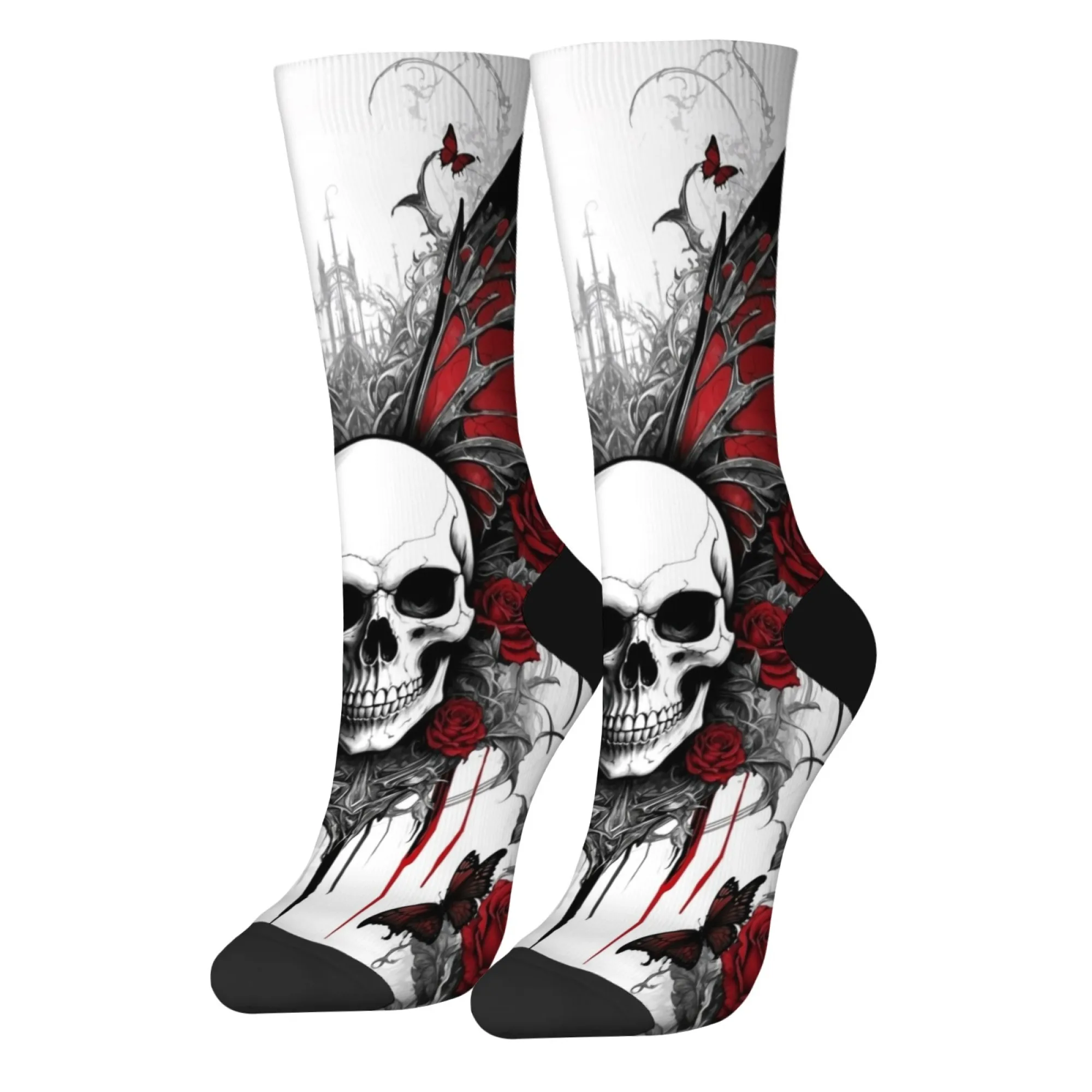 Rose Butterfly Skull Socks Retro Style Casual Fashion Fun Men's Socks Comfortable Breathable Non-slip Cycling Socks Unisex Gift