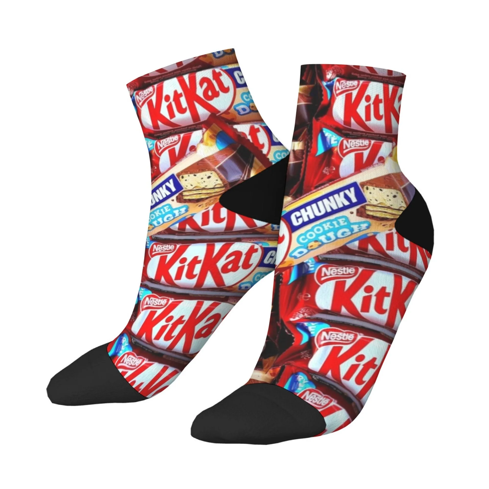 Happy KitKat Novelty Chocolate Bar Print Socks Harajuku Cute Funny Crew Socks Unisex Non-slip Breathable Socks Casual Party Gift