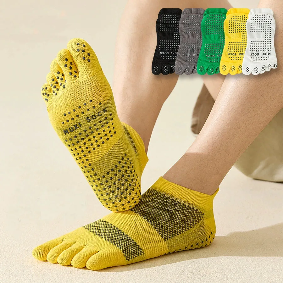 Yoga Pilates Five Finger Socks Ankle Men Cotton Dispense Non-Slip Mesh Solid Simple Compression Athletic, Sport Boat Toe Socks