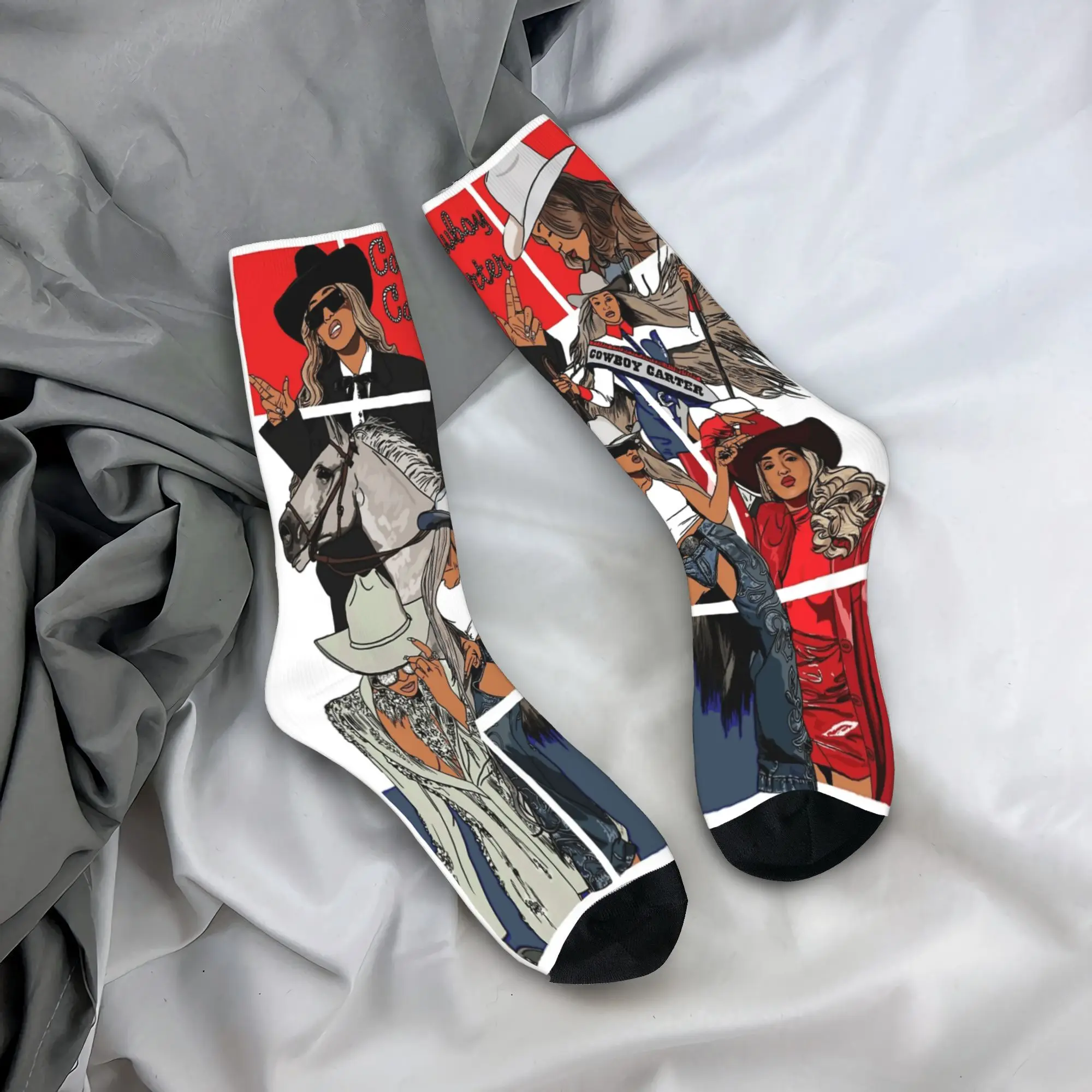 Men Socks COWBOY CARTER Beyoncé cowgirl Stockings Non Skid Soft Socks Autumn Harajuku Pattern Running Sports Socks