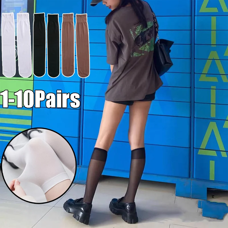Sweet Gothic Fishnet Socks Knee-High Sheer Nylon Stockings Summer Lingerie-Inspired Legwear in White Black Brown