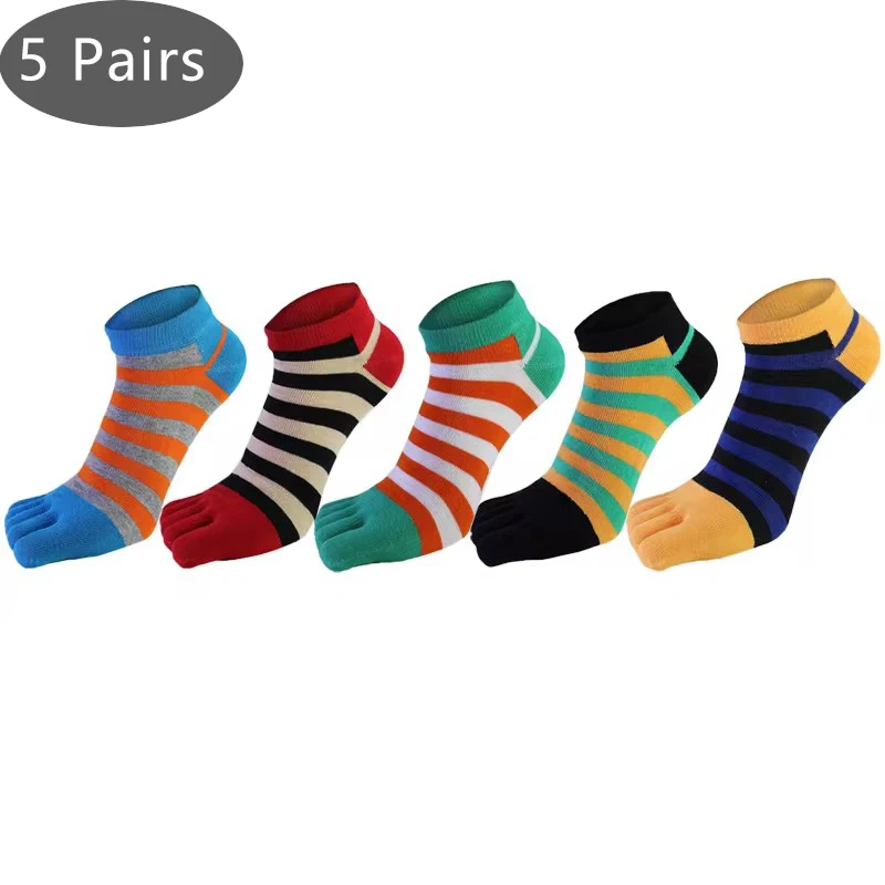 5 Pairs Toe Ankle Socks Cotton Man Striped Soft Elastic Sweat-Absorbing Deodorant Invisible 5 Finger No Show Socks Sokken