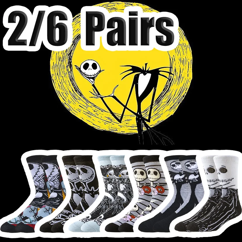 2/6 pairs Trendy Cartoon Anime Socks Unisex Hip Hop Street Fashion Novelty Funny Casual Crew Socks Awesome Footwear