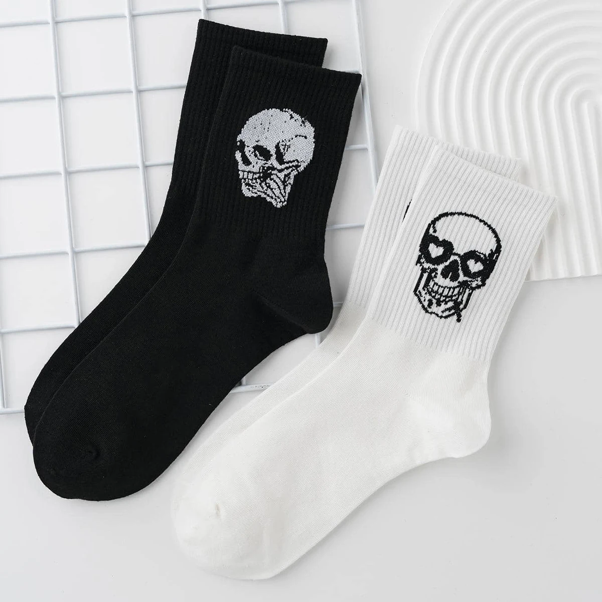 5/10/20 Pairs Men Skull Pattern Fashion Versatile Crew Socks, Halloween Dy, For Daily Life