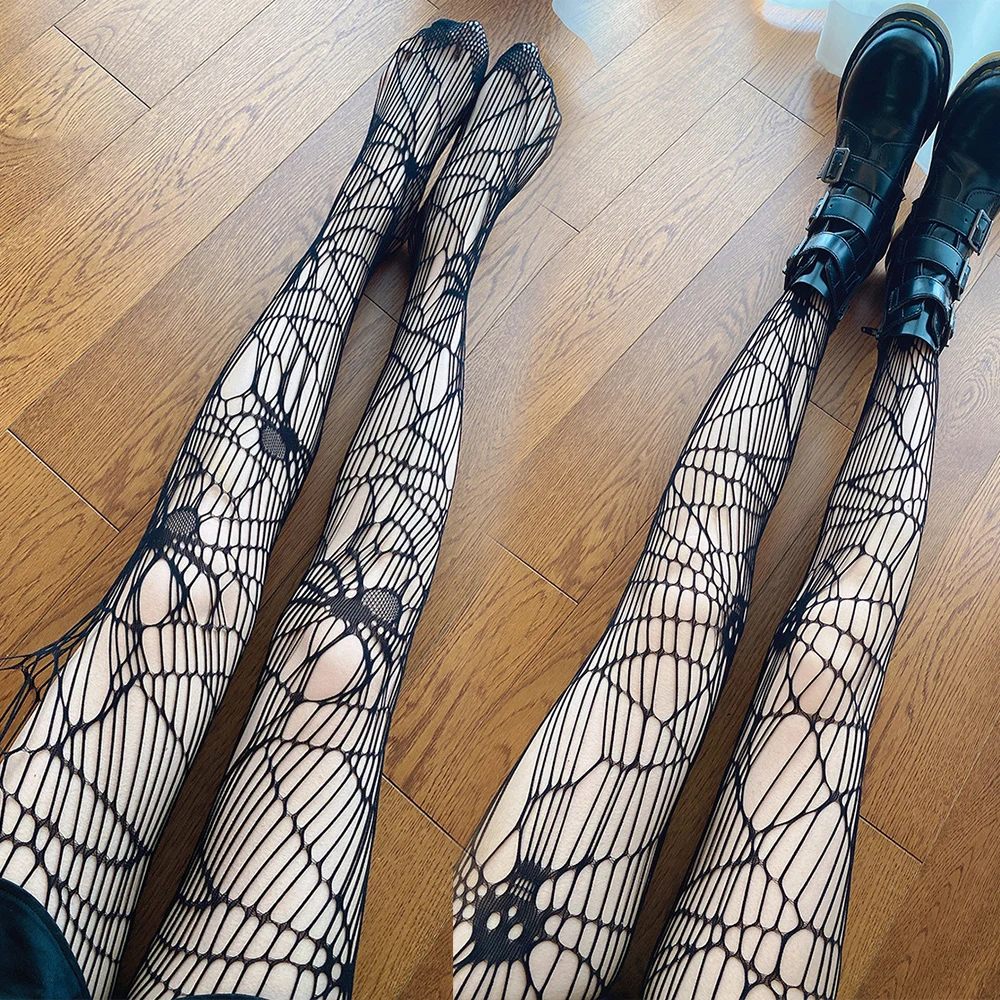 Hollow Out Mesh Tight Stockings Halloween Fishnet Sexy Pantyhose Skull Spider Web Patterned Nylon Stretchy Gothic Dark Pantyhose
