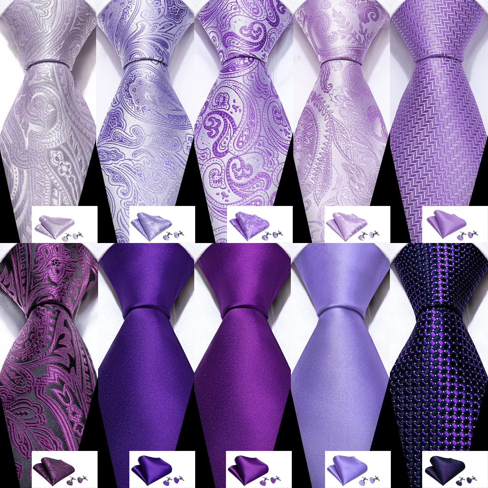 Barry.Wang Purple Silk Mens Tie Hanky Cufflinks Set Lilac Lavender Mauve Violet Jacquard Necktie For Male Wedding Business Party
