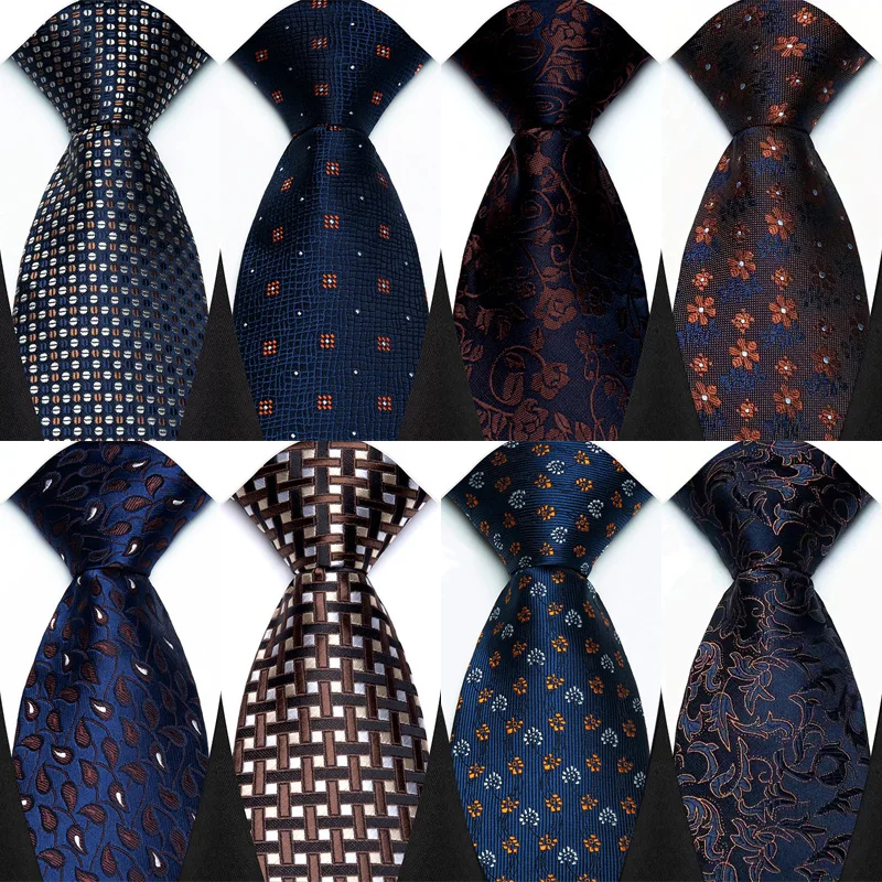 Luxury 8CM Mens Necktie Brown Blue Color Dot Stripes Solid Tie For Man Groom Jacquard Woven Neck Tie For Business Wedding Party