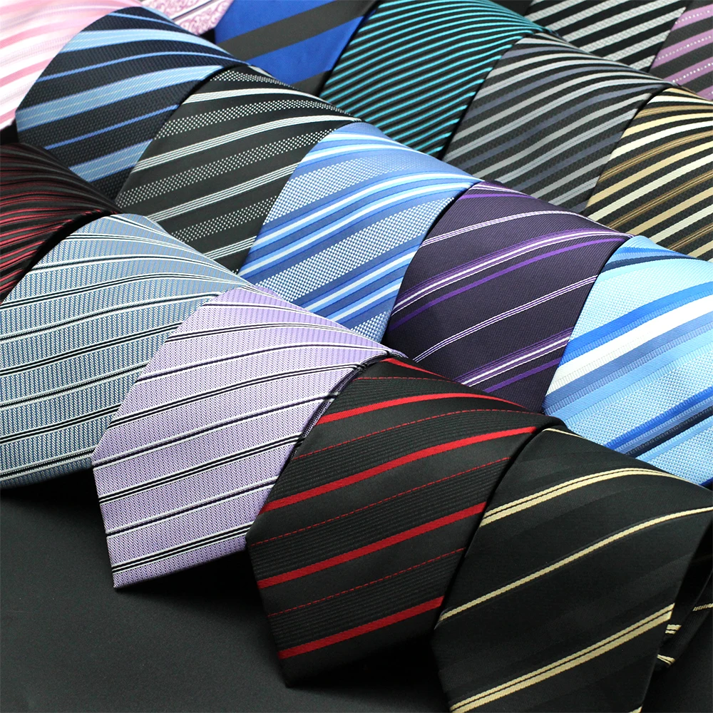Tie Gravatas Fashion Jacquard Woven 7 Cm Necktie Wedding Accessories Dark Blue Man Stripe Fit Group Party Office Dropshipping