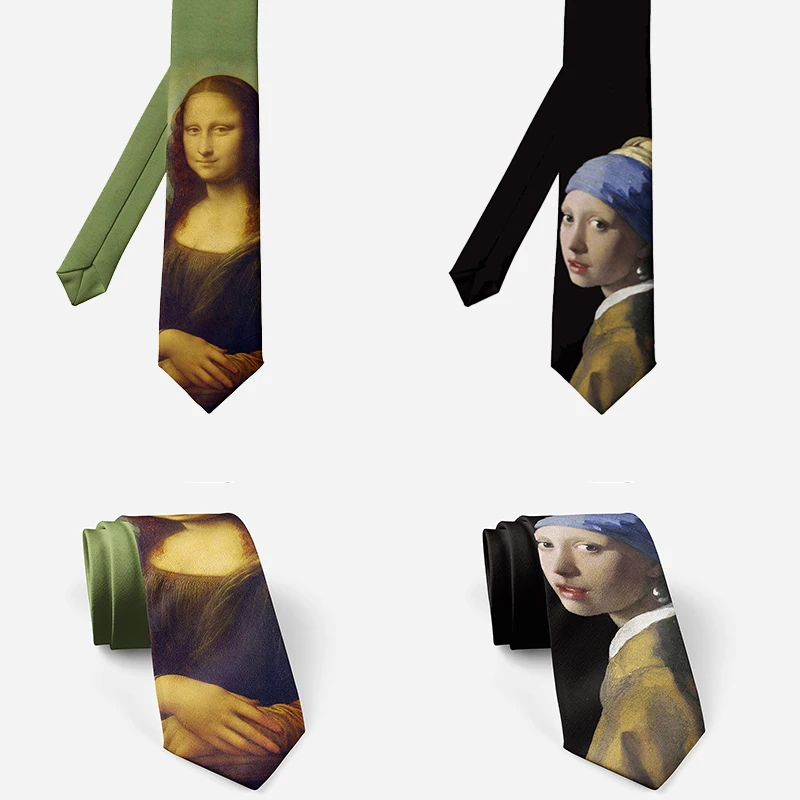 Fashion Mona Lisa Art Print Tie Men 8CM Polyester Slim Business Formal Tie Novelty Trend Party Dating Shirt Matching Tie
