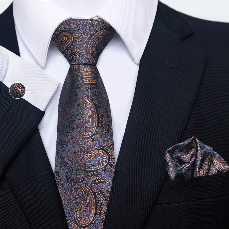 Jacquard Fashion Brand Tie Pocket Squares Set For Men Tie Handkerchief Cufflink Necktie Gift Box Fit Wedding Holiday Workplace