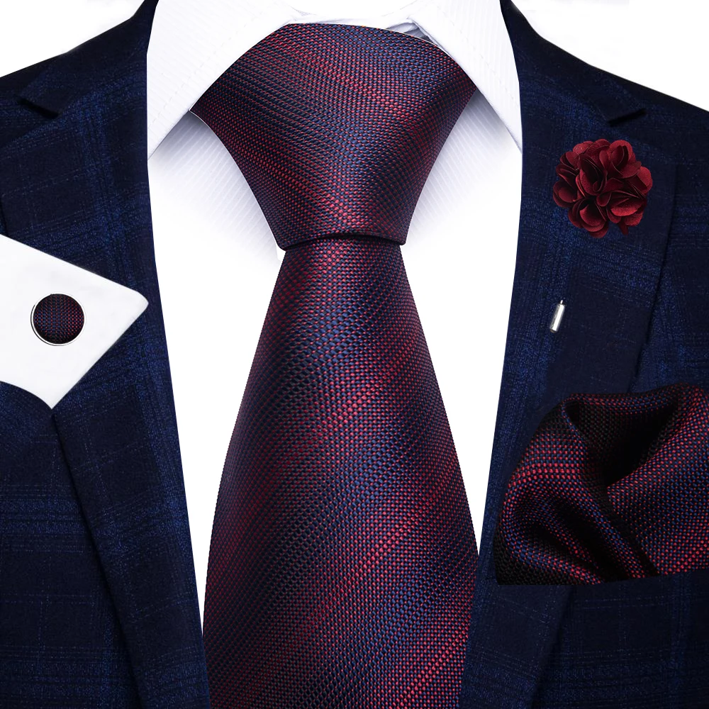 Tie For Men Brand Wholesale Tie Pocket Squares Cufflink Set Necktie Red Pasily Suit Accessories Fit Group
