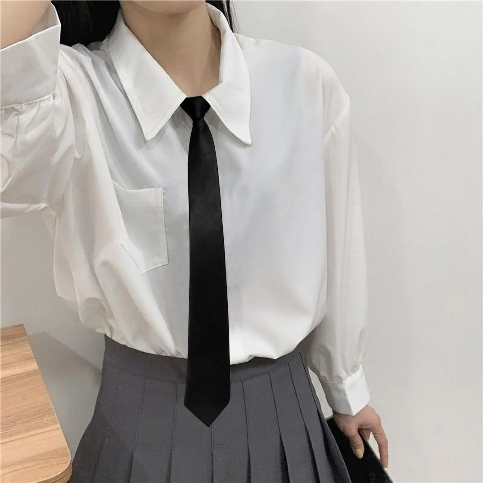 Unisex Black Simple Clip on Tie Women Men Zipper Ties Shirt Accessories Necktie for Man Skinny Slim Narrow Party Wedding Necktie
