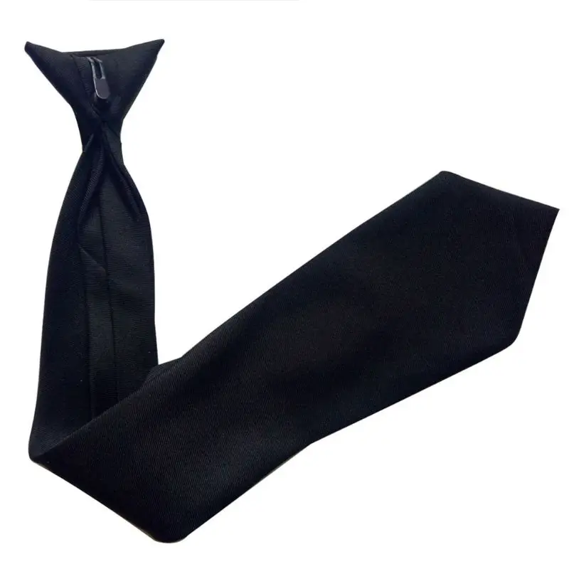 Unisex Black Simple Clip on Tie Security Tie Uniform Shirt Suit Neckties Steward Matte Funeral Lazy Neck Ties Men Women Students