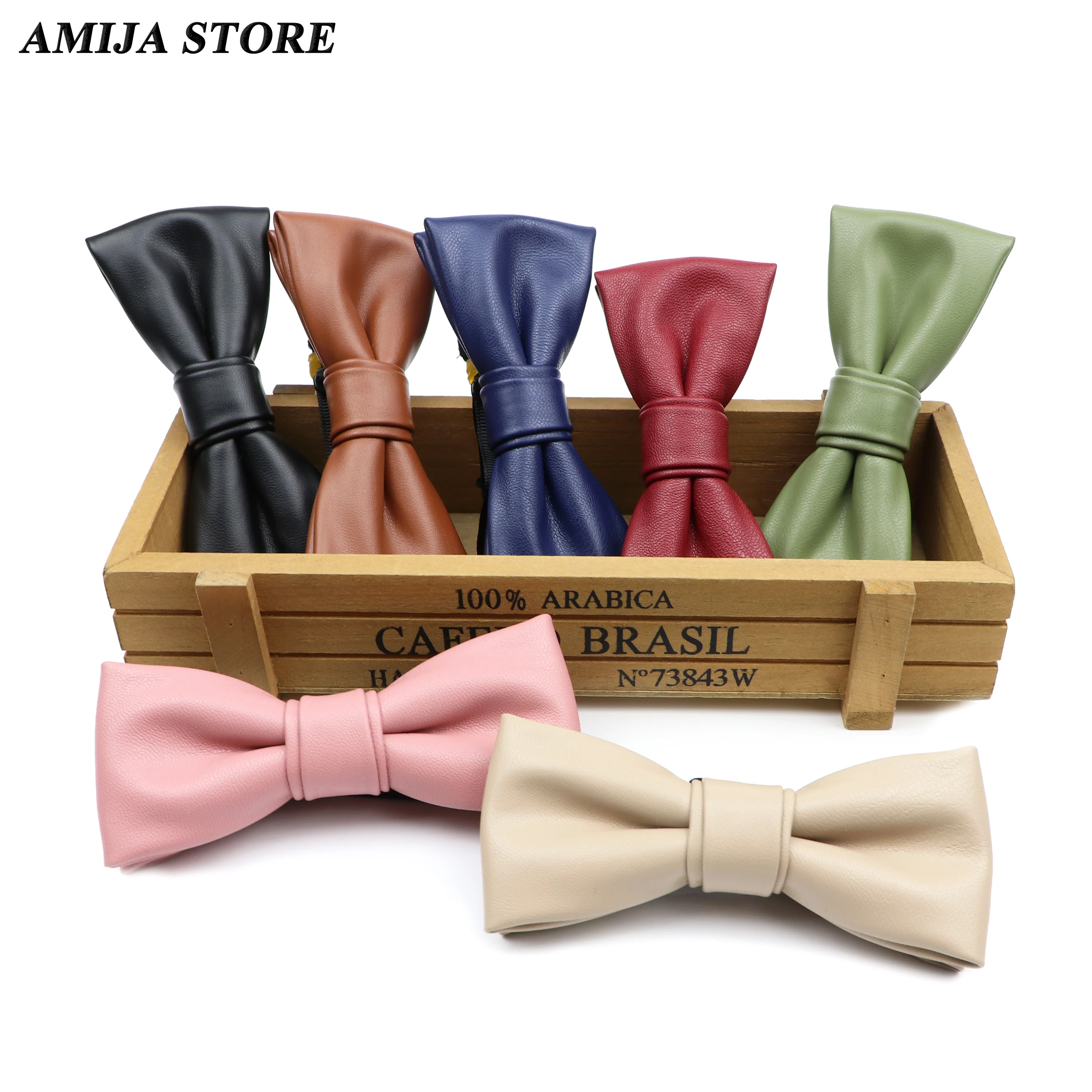 Black Pu Leather Men Patchwork Bow Tie Female Necktie Red Gold Silver Butterfly Adult Cravate Homme Wedding Party Ties For Men