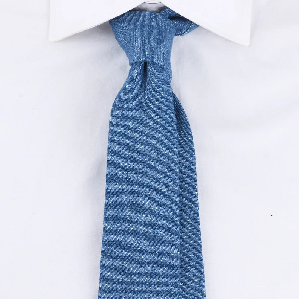 6.5CM Width Solid Navy Blue Neckties Adult Size Cotton Denim Plaid Ties For Men Women Casual Daily Neckwear Wedding Party Cravat