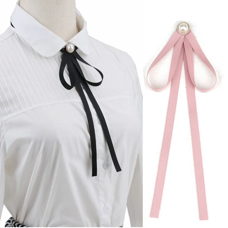 Pearl Ribbon Brooches Pin Bow Tie Vintage Pre-Tied Collar Black Blue Bowknot White Shirt Necktie Clip Women Girls Clothes Ties