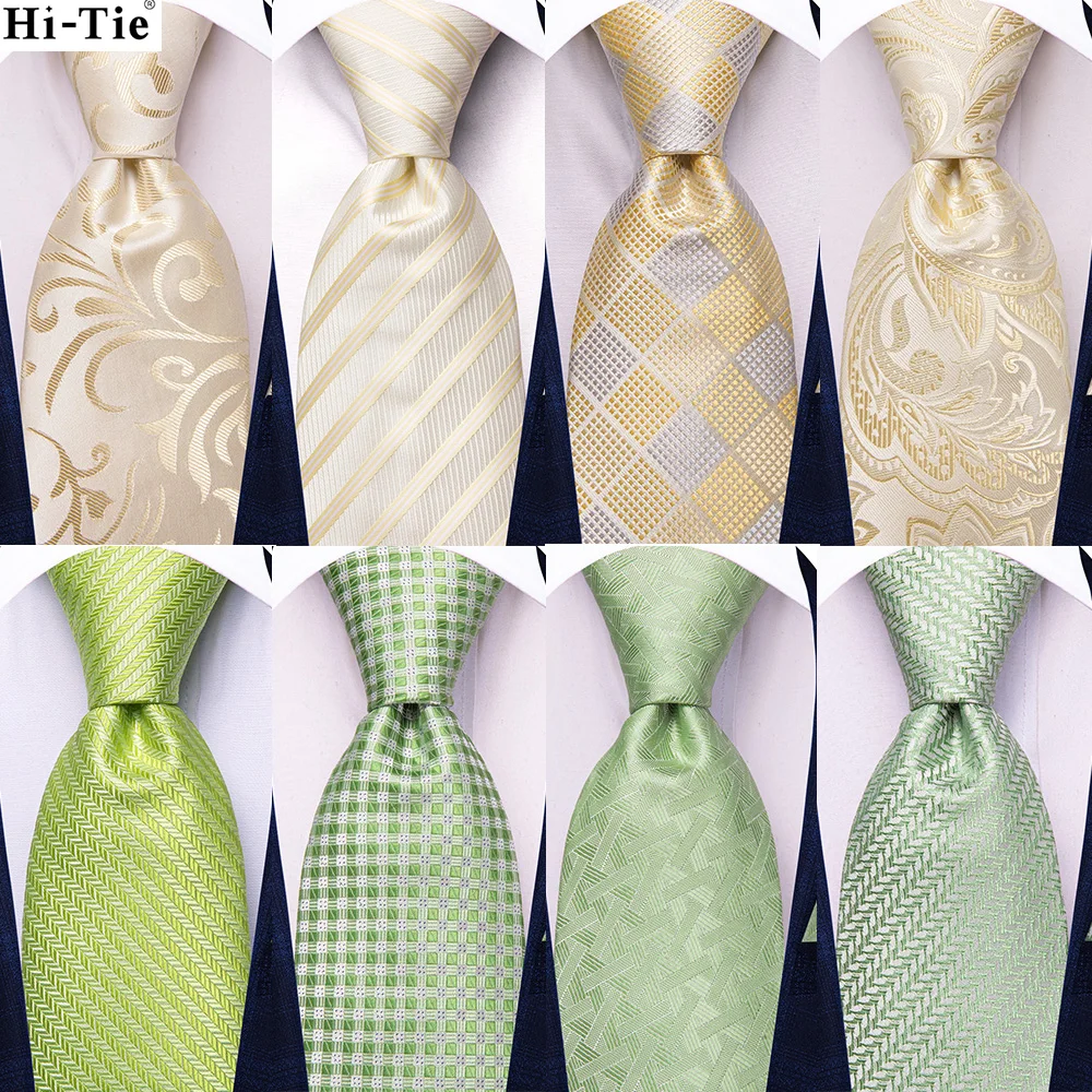 Hi-Tie Champagne Elegant Mens Ties Sage Green Silk Necktie For Men Hanky Cufflink Wedding Party Business Fashion Brand Designer  Read more