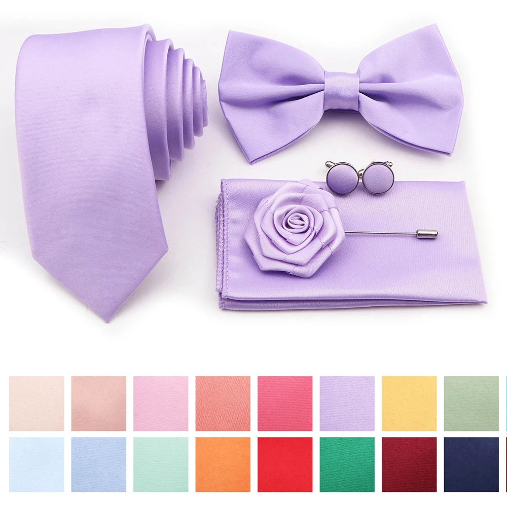 Hot Sale Purple Pink Sage Green Tie Set Polyester Necktie Bowtie Cufflink Brooch For Groom Suit Wedding Cravat Shirt Accessory  Read more