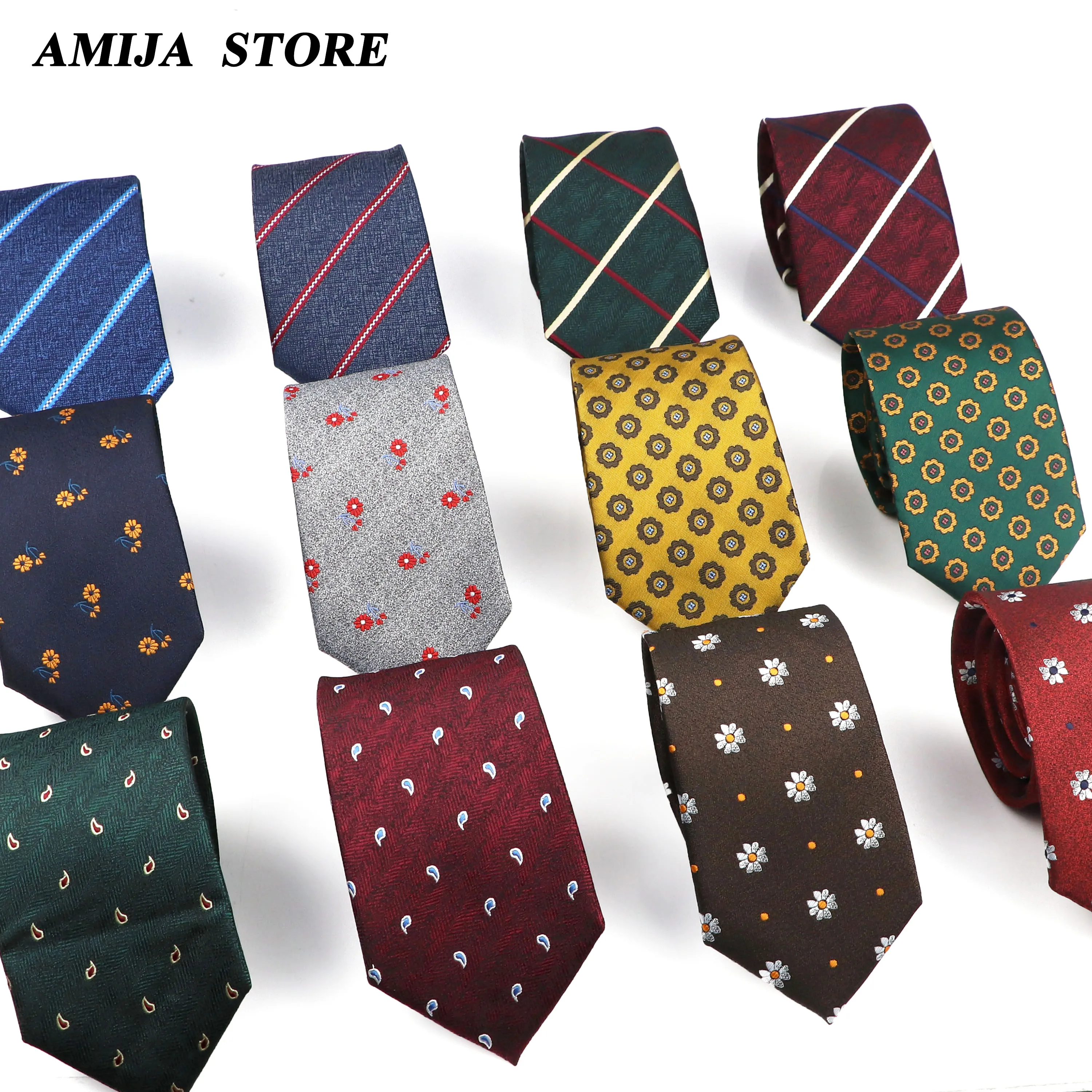 New Style Men's Tie 7cm Striped Plaid Necktie Green & Yellow Gravatas For Men Paisley Floral Print Tie Suit Male Wedding Workpla