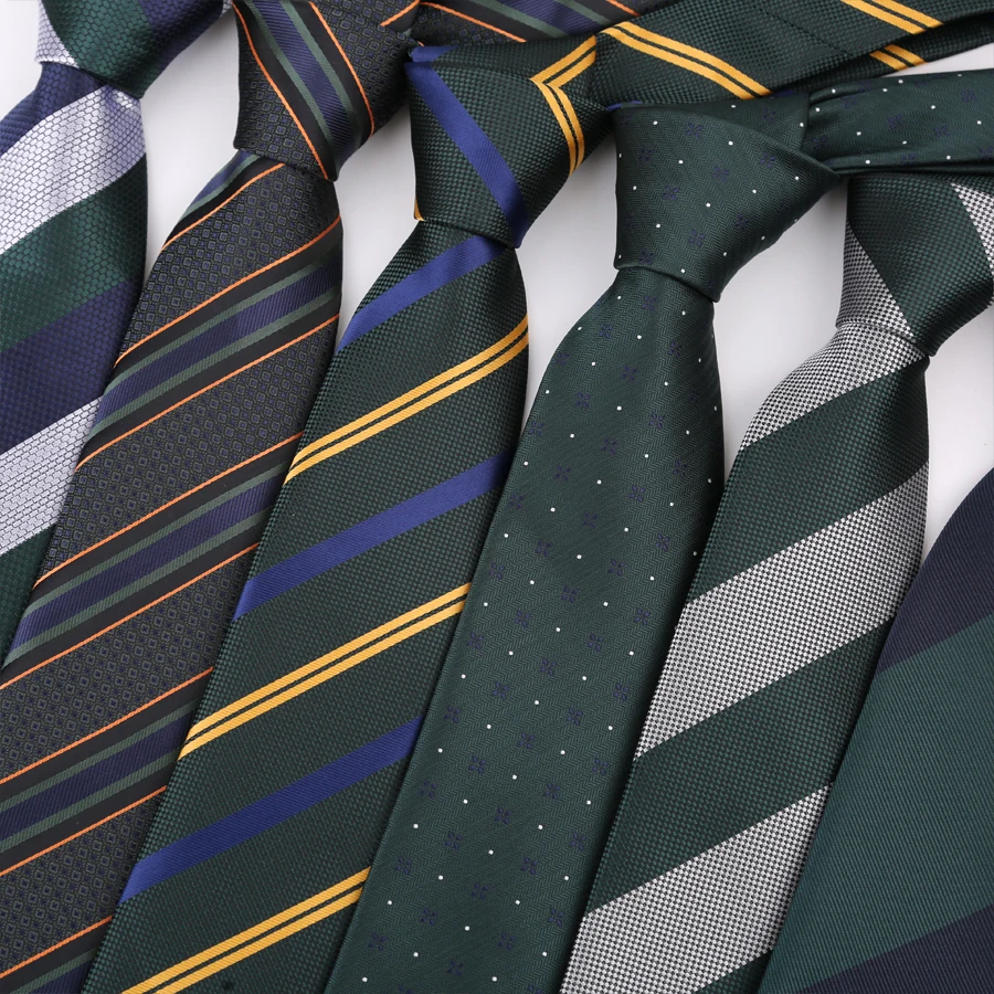 New Men's Tie Luxury Green Color Stripes Dot 8cm Jacquard Neck Tie Necktie For Men Business Wedding Party Daily Wear Accessory  Read more
