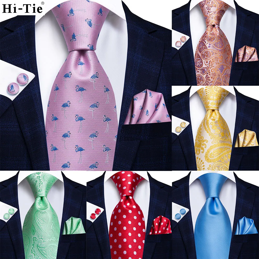 Hi-Tie Pink Mint Green Paisley Design Silk Wedding Tie For Men Quality Hanky Cufflink Fashion Nicktie Business Party Dropshiping  Read more