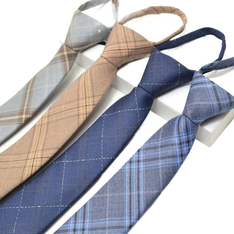 New 48*6cm Mans Tie Plaid Slim Skinny Ties Cotton Zipper Necktie Easy to pull designer tie wedding party gifts for men neckwear  Read more