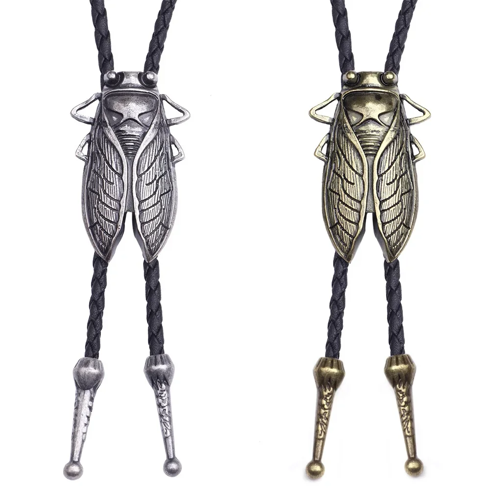 Fashion Metal Cicada Retro Bolo Tie for Men Necklace Pendant Leather Rope Necktie Shirt Collar Bowtie Accessories Cowboy Jewelry