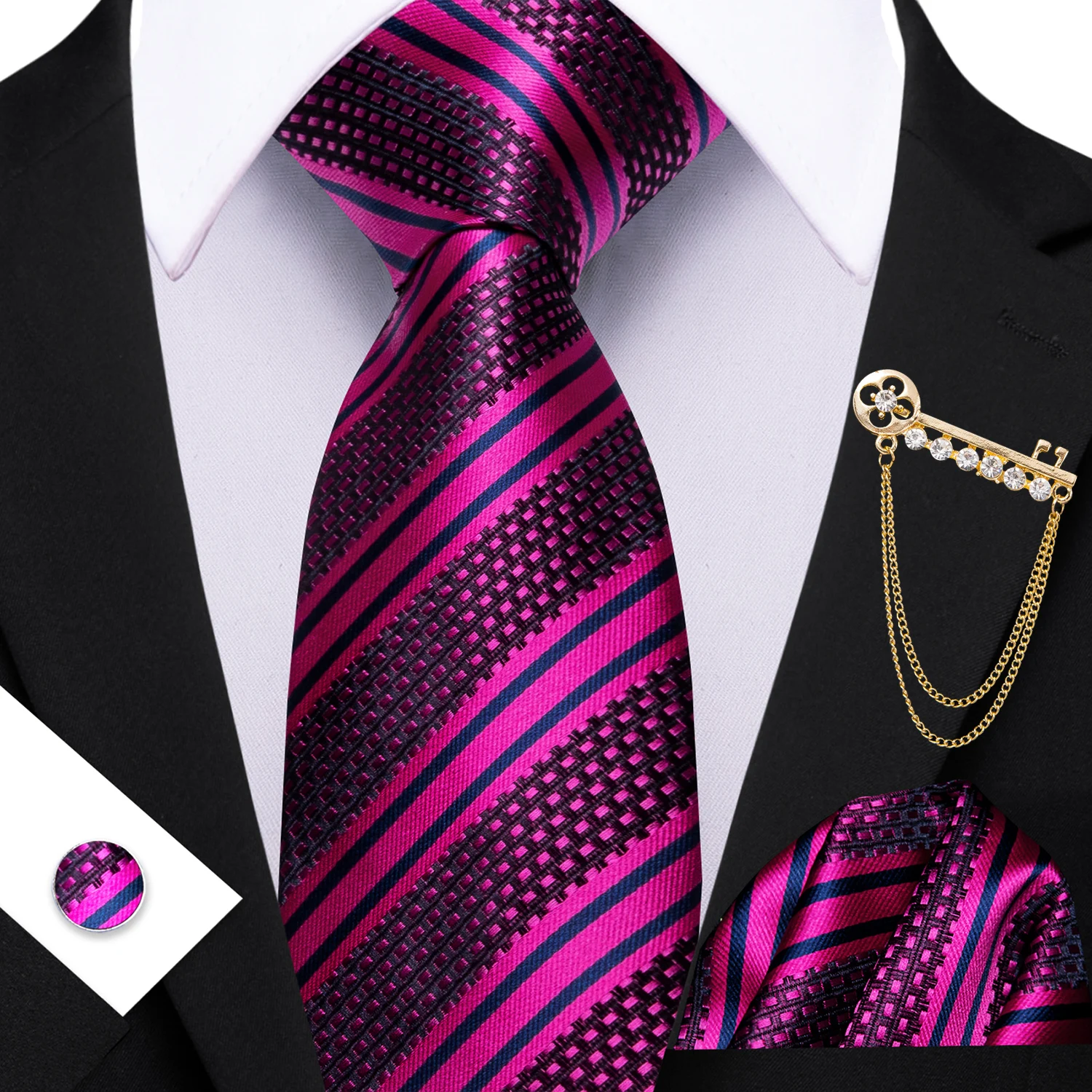 Men's Fashion Striped Blue Golden Purple Tie Set with Matching Pocket Square & Cufflinks Brooch Casual Necktie Accessories  Read more