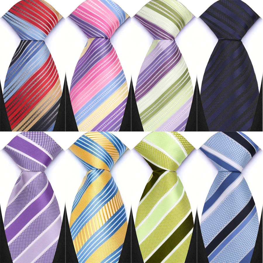 Classic Striped Necktie For Men 8cm Width Red Blue Pink Purple Ties Wedding Party Daily Wear Business Cravat Accessories  Read more