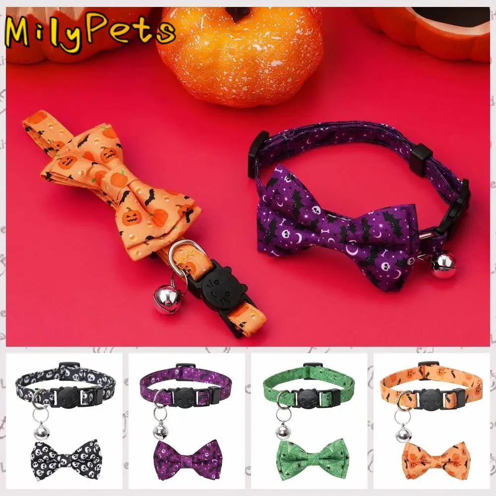 With Bell Halloween Cat Collar Bowknot Removable Pumpkin Puppy Necklace with Bell Adjustable Cotton Polyester Cat Bow Tie
