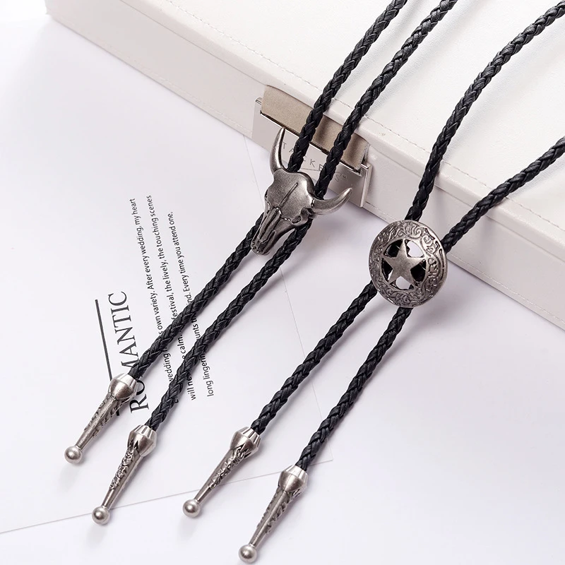 Fashion Mens Leather Cow Head Bolo Tie Necklace Jewelry Retro Western Cowboy Mens Gifts Necktie Men Accessories