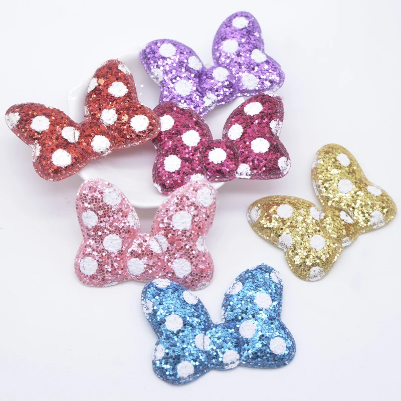 12Pcs 55*42mm Padded Glitter Leather Bow Tie Patches for Clothes Hat Shoes Sewing Applique Headwear Hair Clips Decor Accessories  Read more