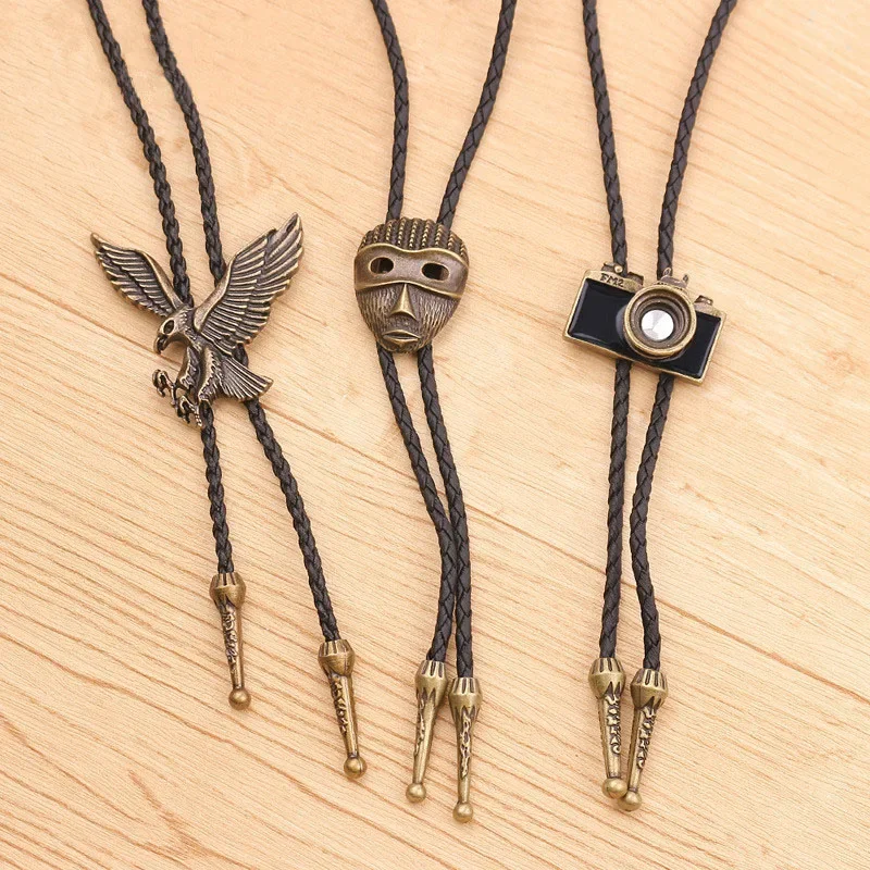 Fashion Bolo Tie Hand-knitted Leather Rope Long Sweater Chain Retro Camera Eagle Mask Necklace Wholesale Bow Tie