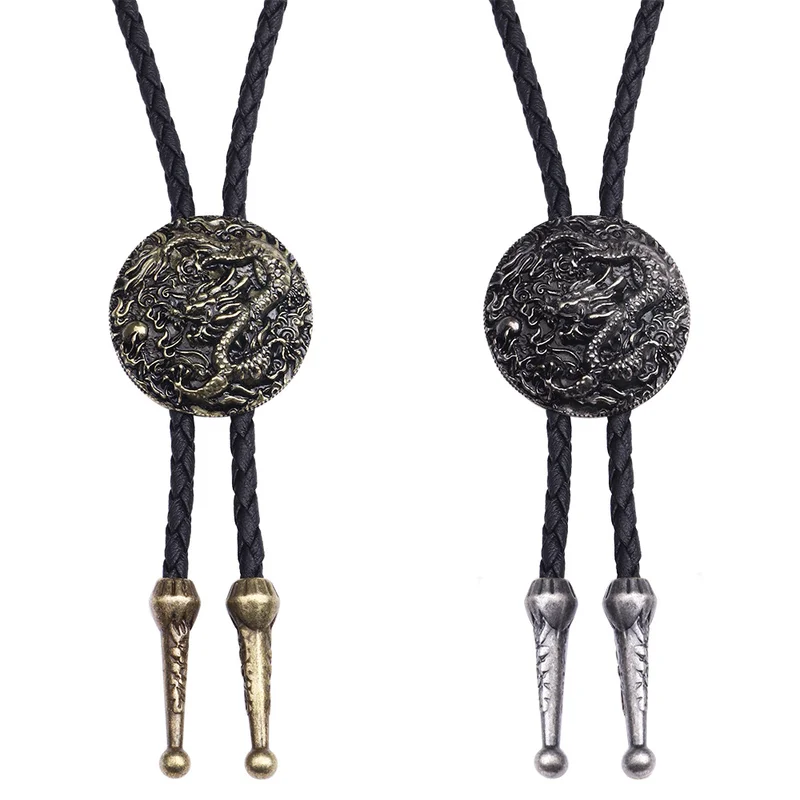 BOLO TIE Necklace Ethnic Style Men Women Bolo Tie Silver Chinese Dragon Necklace Leather Long Necklace Sweater Chain Pendant