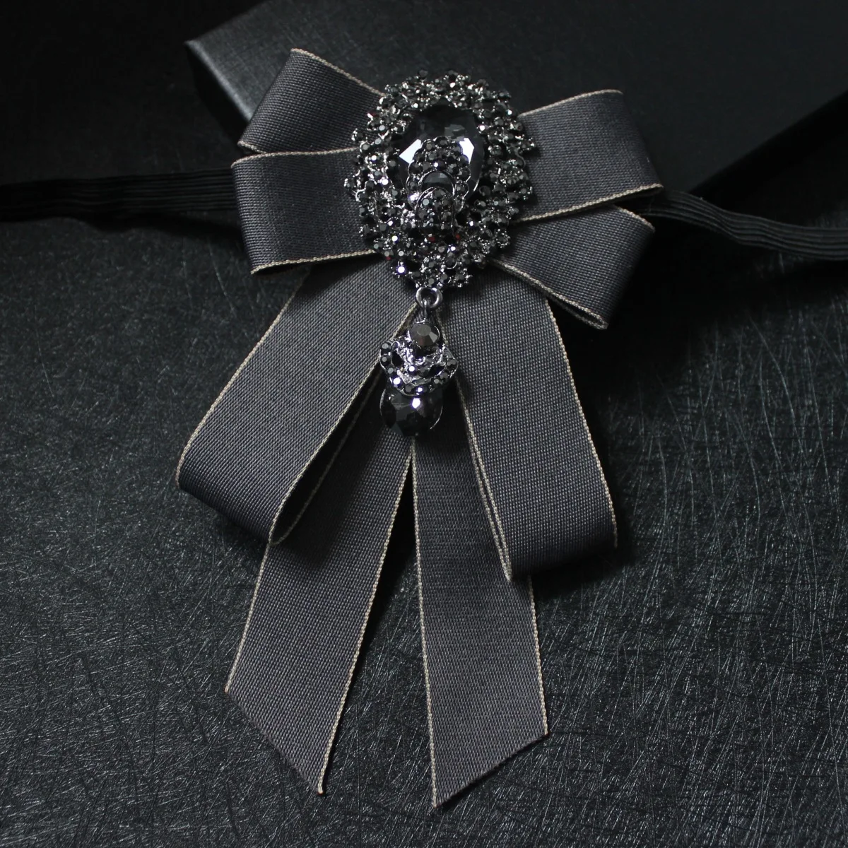 British Men Women Silk Satin Ribbon Bow Tie Cravat Luxury Groom Necktie Business Wedding Party Alloy Crystal Rhinestone Bowtie