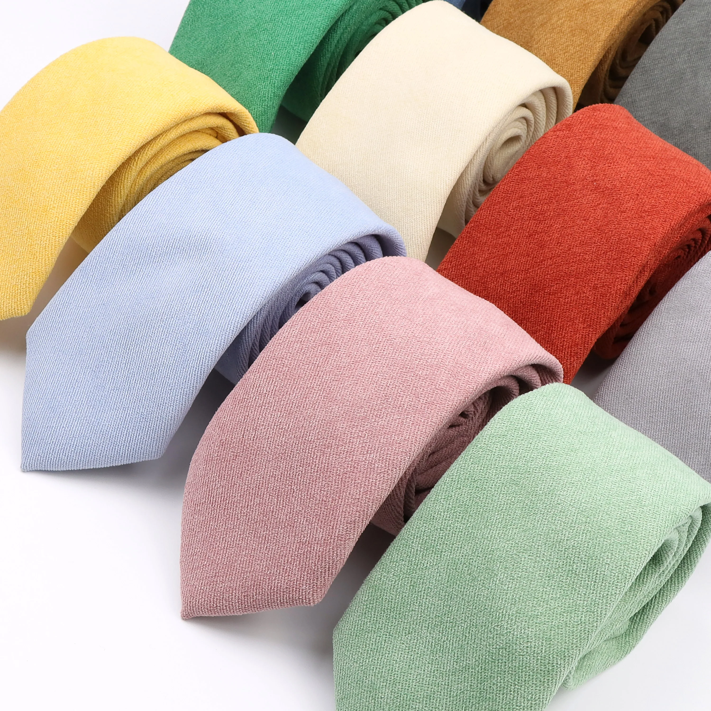 New Colorful Solid Super Soft Cotton Corduroy Neck Tie 7cm Skinny Pink Blue Green Wedding Party Tuxedo Tie Gift Cravat Accessory