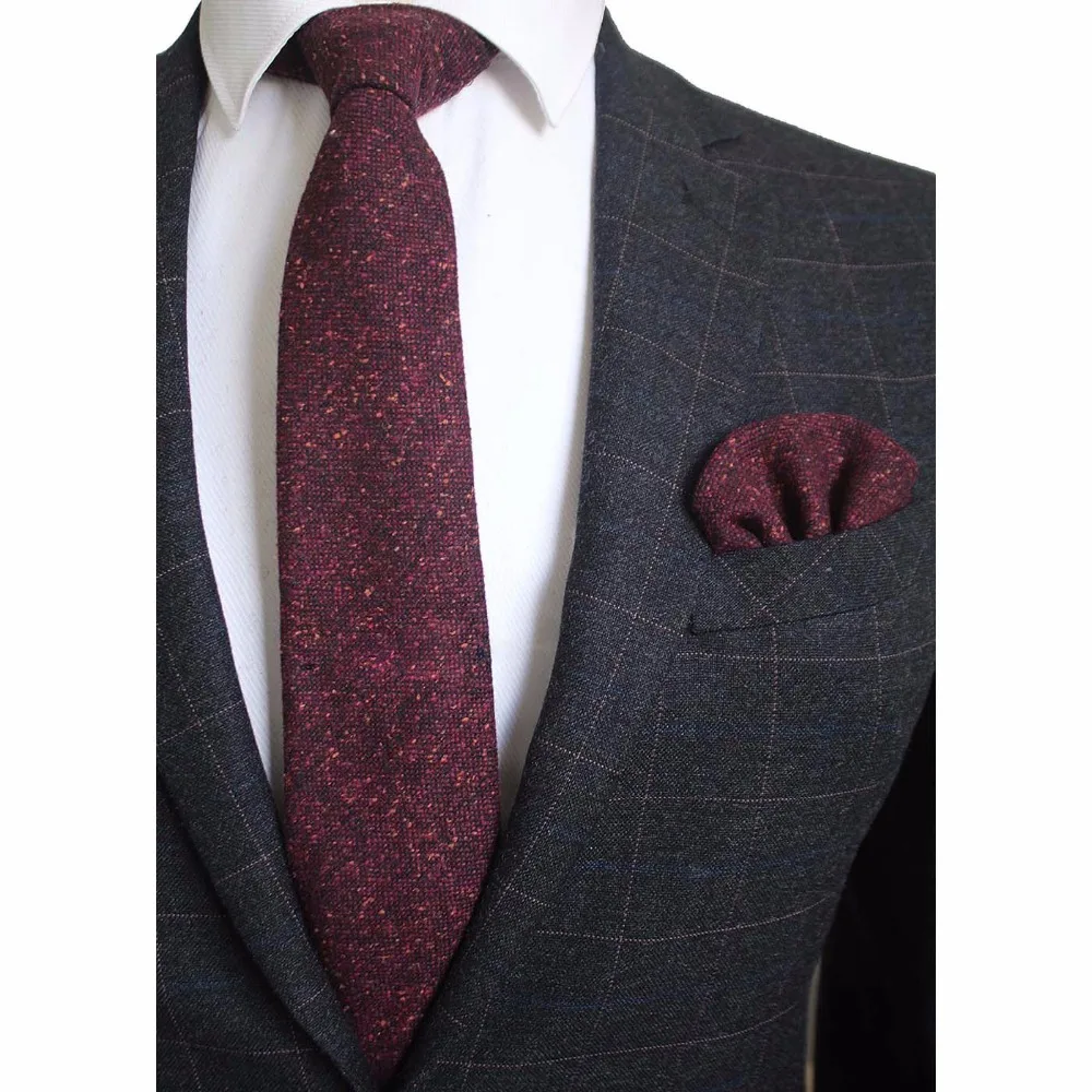 Ricnais 8cm Wool Necktie Solid Plaid Tie For Men Quality Cashmere Tie and Handkerchief Cravats Set Suit For Wedding Party  Read more